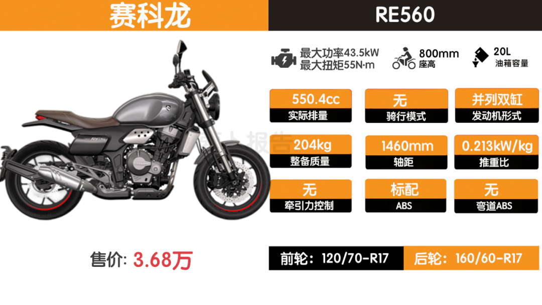 还有我们刚刚测试完的赛科龙RE560,它也有着很浓的复古腔调,同时它的动力体验和操控感受也很不错,做工方面也相对精致。至于您更喜欢谁,就看您能更喜欢哪种风格了。