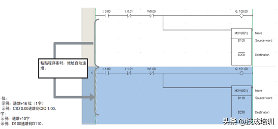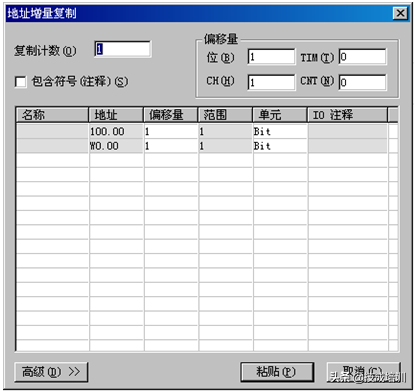 示例(如图2-15):复制一下程序条时,在粘贴程序条时位地址可递增+16,字地址可递增+10。
