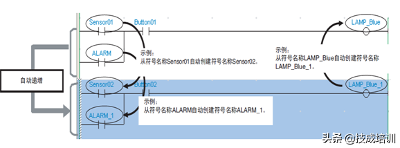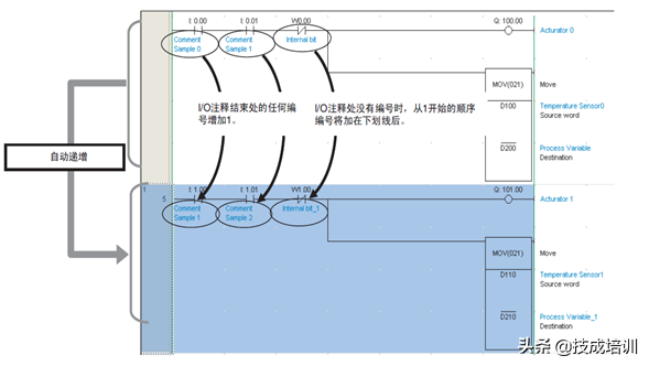 如果已被复制的程序条中有符号名称或I/O注释,执行“复制递增地址”(AddressIncrementCopy)