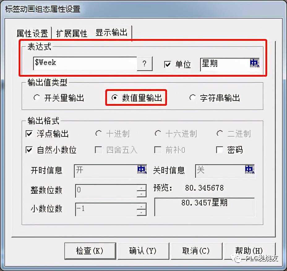 第六步:(如果要显示星期,连接变量$Week,输出值类型选择:数值量输出)