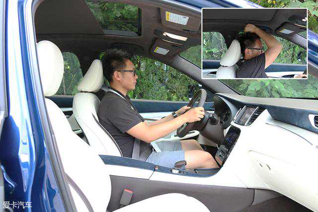 体验者身高176cm,将座椅调至最低并保持合理坐姿,此时头部空间剩余一拳两指。