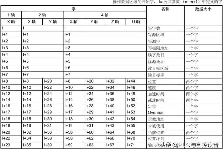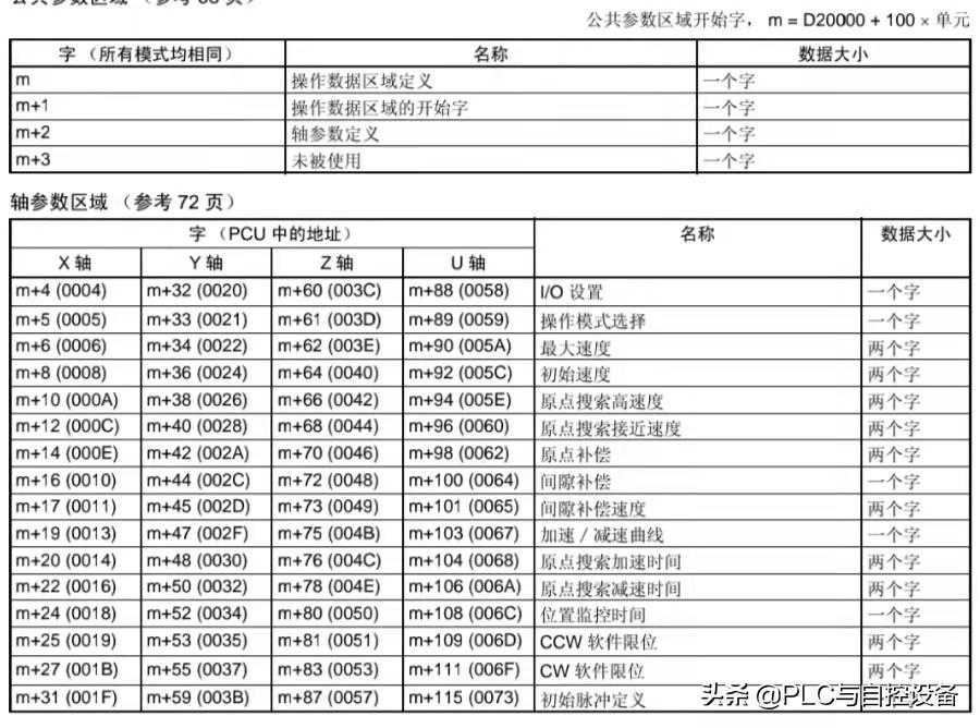 2、m区为公共参数和轴参数区,其中公共参数占用(m~m+3),开始字m=D20000+100*单元号。