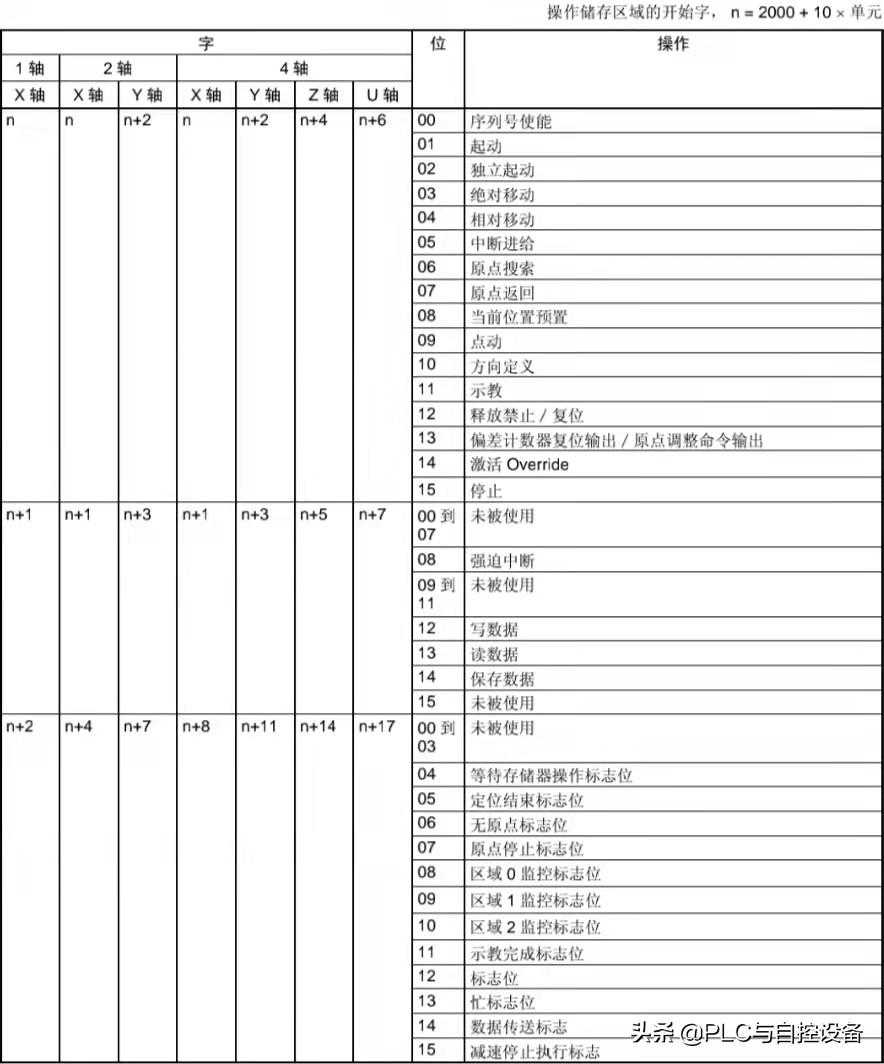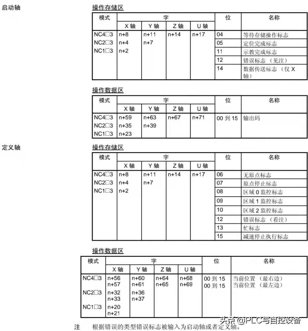 3、n区为操作存储器区,作用是对NC单元进行控制输出(序列号使能、操作控制位、读写数据位等),及NC单元状态的返回(标志位、原点信号位、错误代码等)。