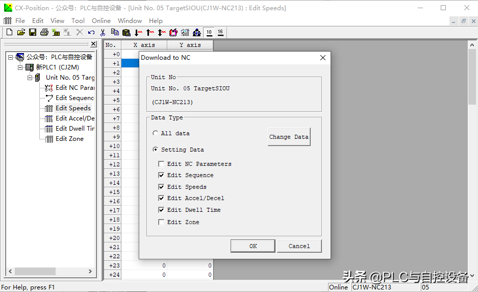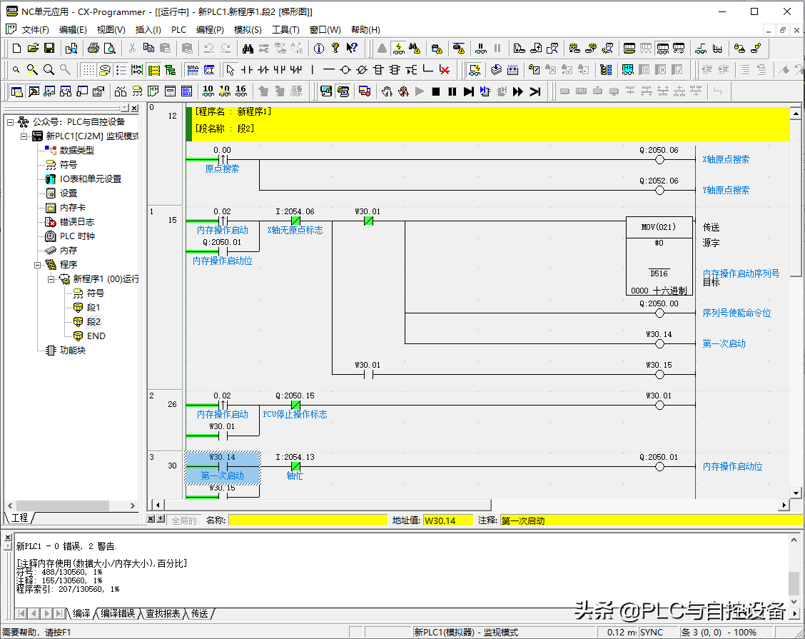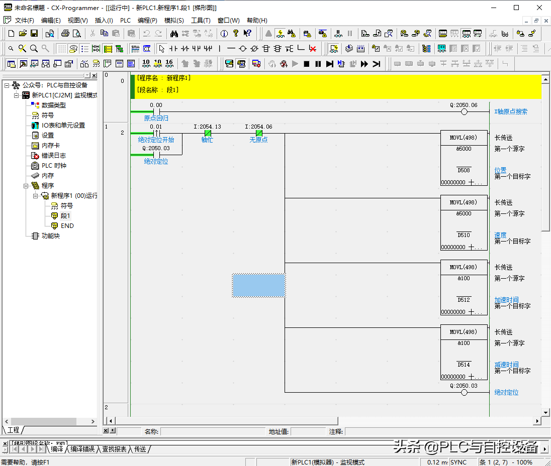 内存操作是指定位控制所需的参数数据(定位序列、位置、速度、加减速时间)被预先传输到NC位置控制单元中,NC单元根据PLCCPU向工作存储器区发出命令,执行相应的定位序列来完成定位控制。内存操作可以通过序列的完成码,实现包括插补在内的复杂多样的定位控制。