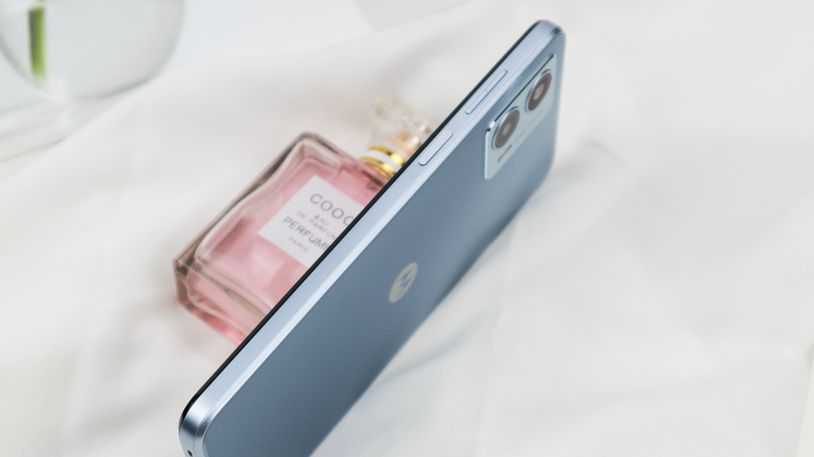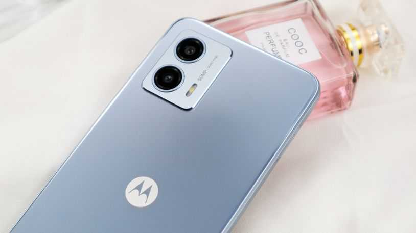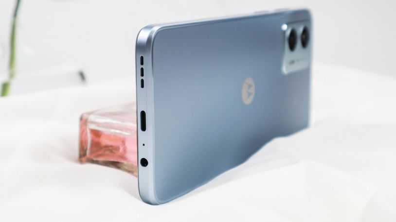 motoG53屏幕的额头和下巴呢并不算很窄的那种,但是作为一款千元机,它支持双扬声器,整个手机其实采用的是直角边的设计,但是为了防止有硌手感,整机的屏幕面和后盖边缘都做了倒切角的处理,细节上做得还是不错的。
