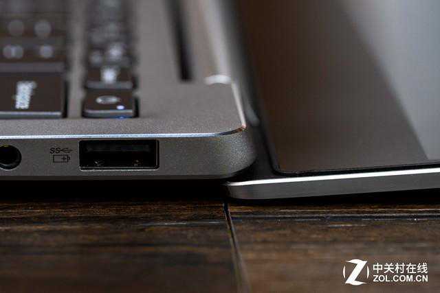 在TYPE-C日渐成为主流的今天,联想720S在左右两侧各配置了一个标准的接口,在同类轻薄本里算比较少见的了。这款机器的左侧配置了两个接口,一个支持充电,另外一个支持转接DP输出但不支持雷电3协议。