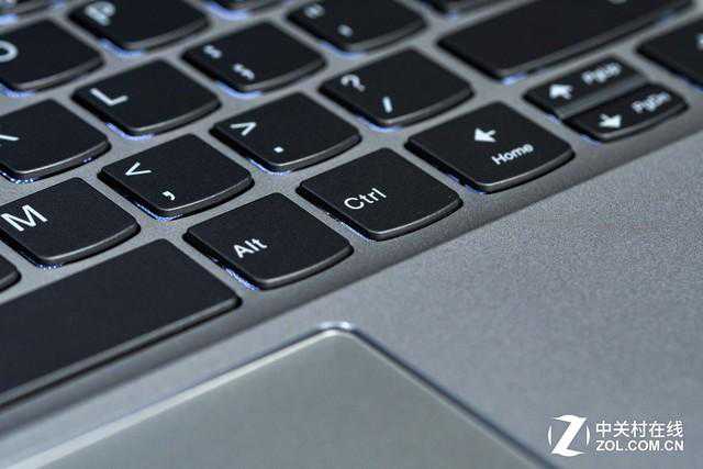 联想720S拥有全尺寸键盘,键程大约为1.3mm,键距相比普通笔记本增大到了0.15mm,配合磨砂喷漆工艺键帽以及跟手的回弹速度,能够带来爽快的输入体验。另外,键盘还拥有两档可调背光,整体的使用感受十分出色。