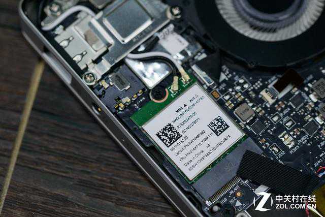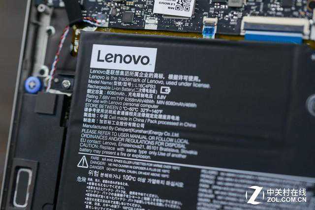 ideapad720S仍然采用单热管双风扇设计,风扇和热管厚度都是超薄处理方案,其板载内存和固态硬盘都搭配了金属屏蔽罩,缜密而细腻。这款13.3英寸笔记本的电池容量达到了48Wh,是个还算不错的数值。AMD锐龙52500U移动理器的异构APU设计节省了很大比例的PCB面积,同IdeaPad720S整体相得益彰。