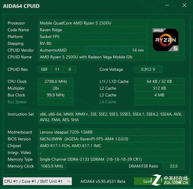 IdeaPad720SAPU版除了搭载锐龙52500U处理器,还配备了DDR42133内存、256GB三星通道固态硬盘,我们下面为您带来整机测试。