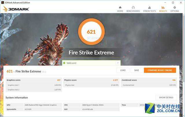Vega8GPU的实际表现可能略强于Intel低电压系列GT3等级Iris540到580之间几款锐炬核显,同NVIDIA独显Geforce940MX水平相近或略有超出。由于总TDP的限制,这款GPU的实际表现并不稳定,3DMARK中几次运行成绩的偏差就达到了100分以上。