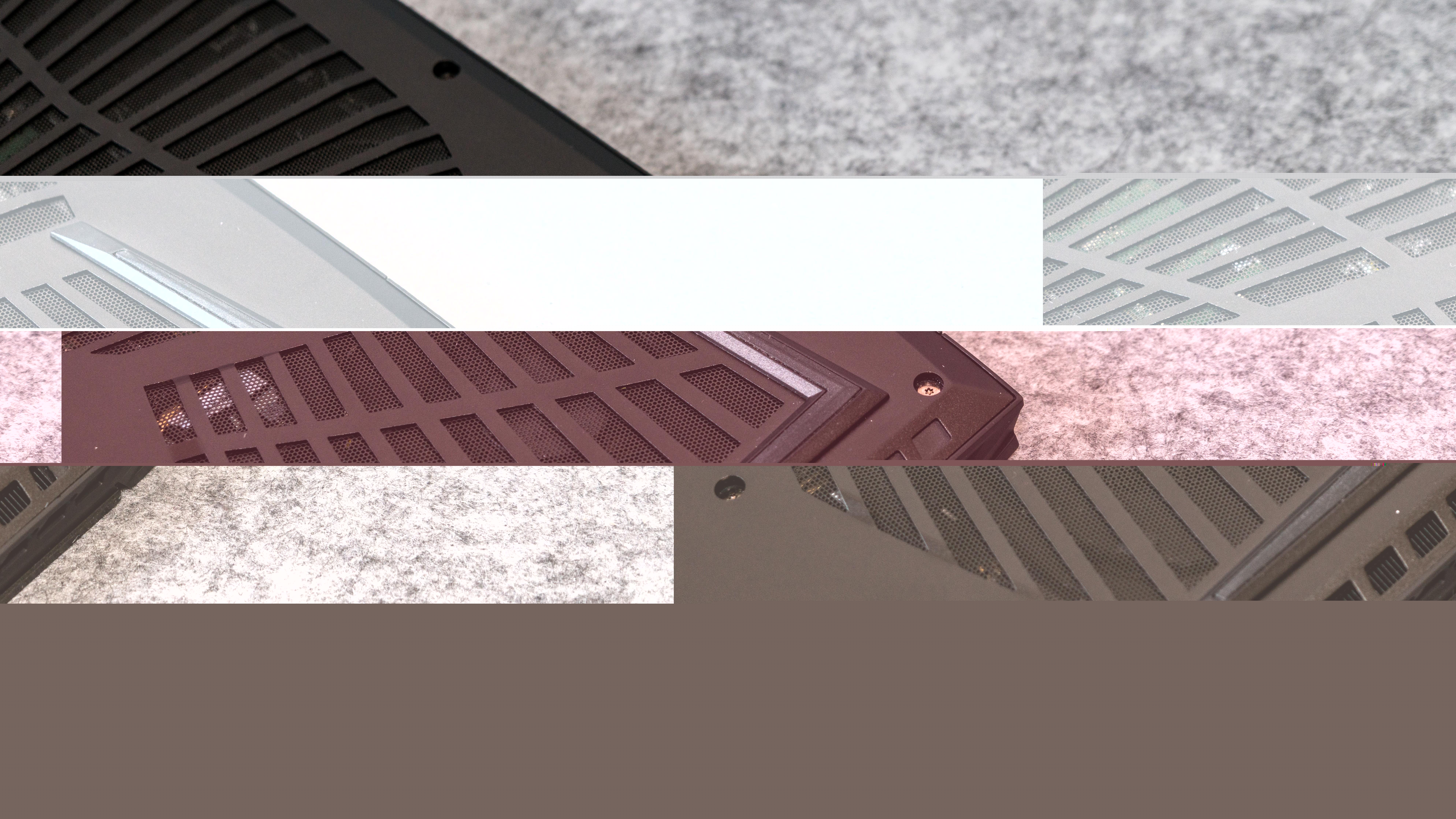 散热模块都拆干净了之后就可以发现尾部中间品牌铭文两侧的防尘网并没有出风的作用,加上防尘网只是为了外观的质感和防止进灰而已