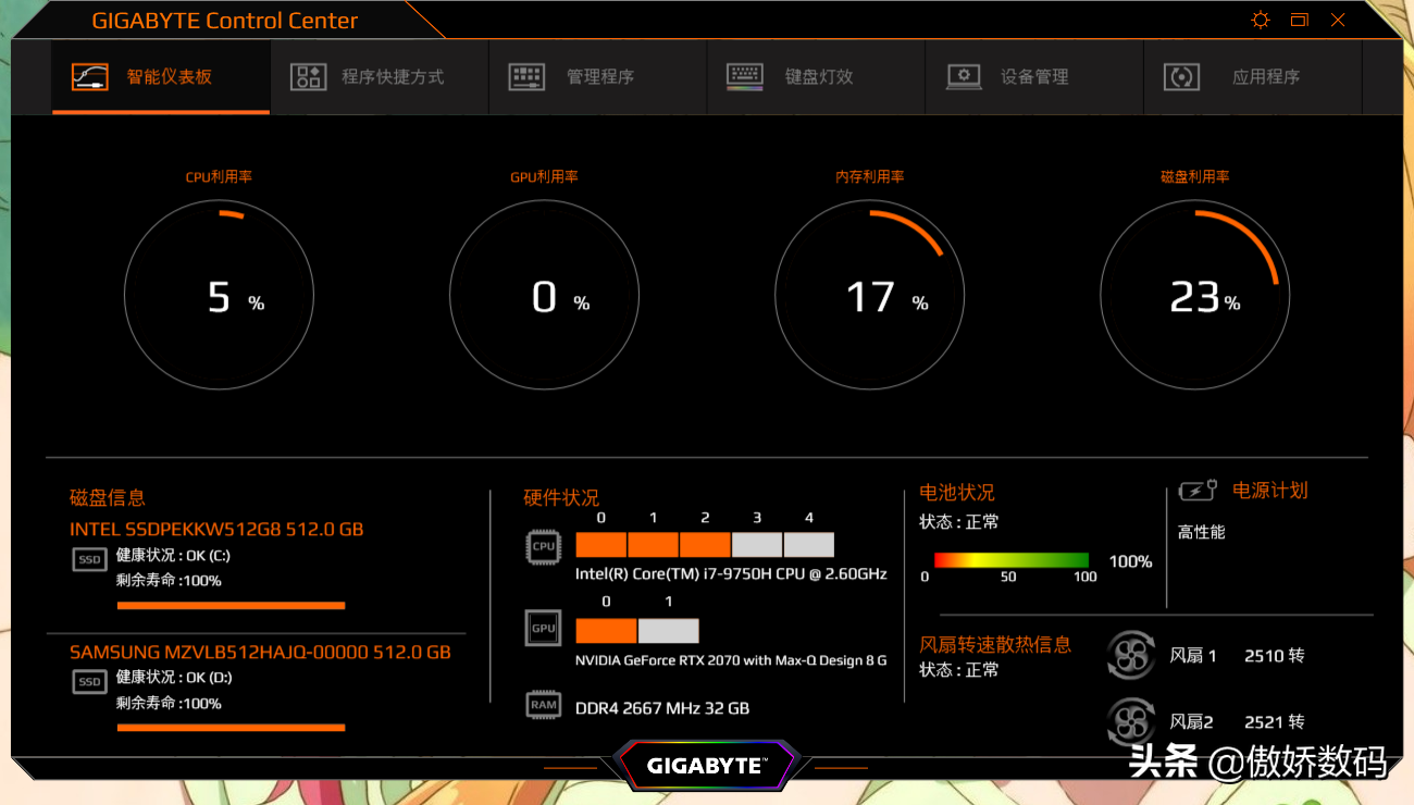 技嘉这台本本比较好的一点是没有预装什么乱七八糟的软件,比较主要的也就一个控制中心软件了
