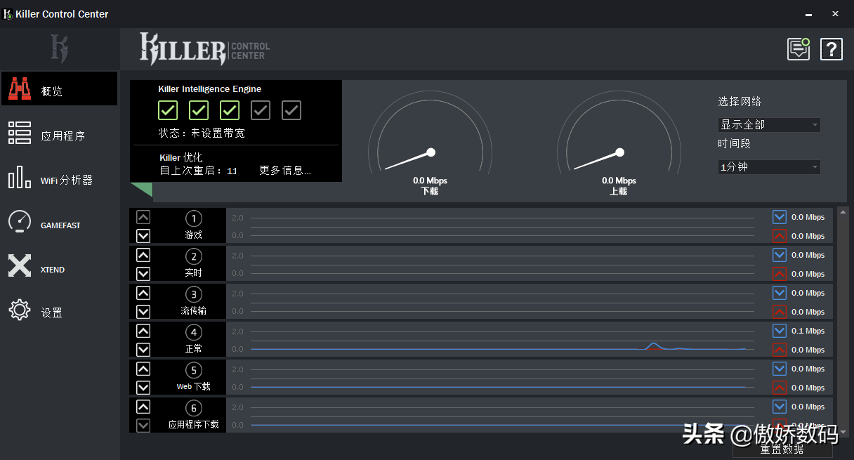 第二个预装的就是killer网卡的管理程序了。可以直接看到网络使用状态