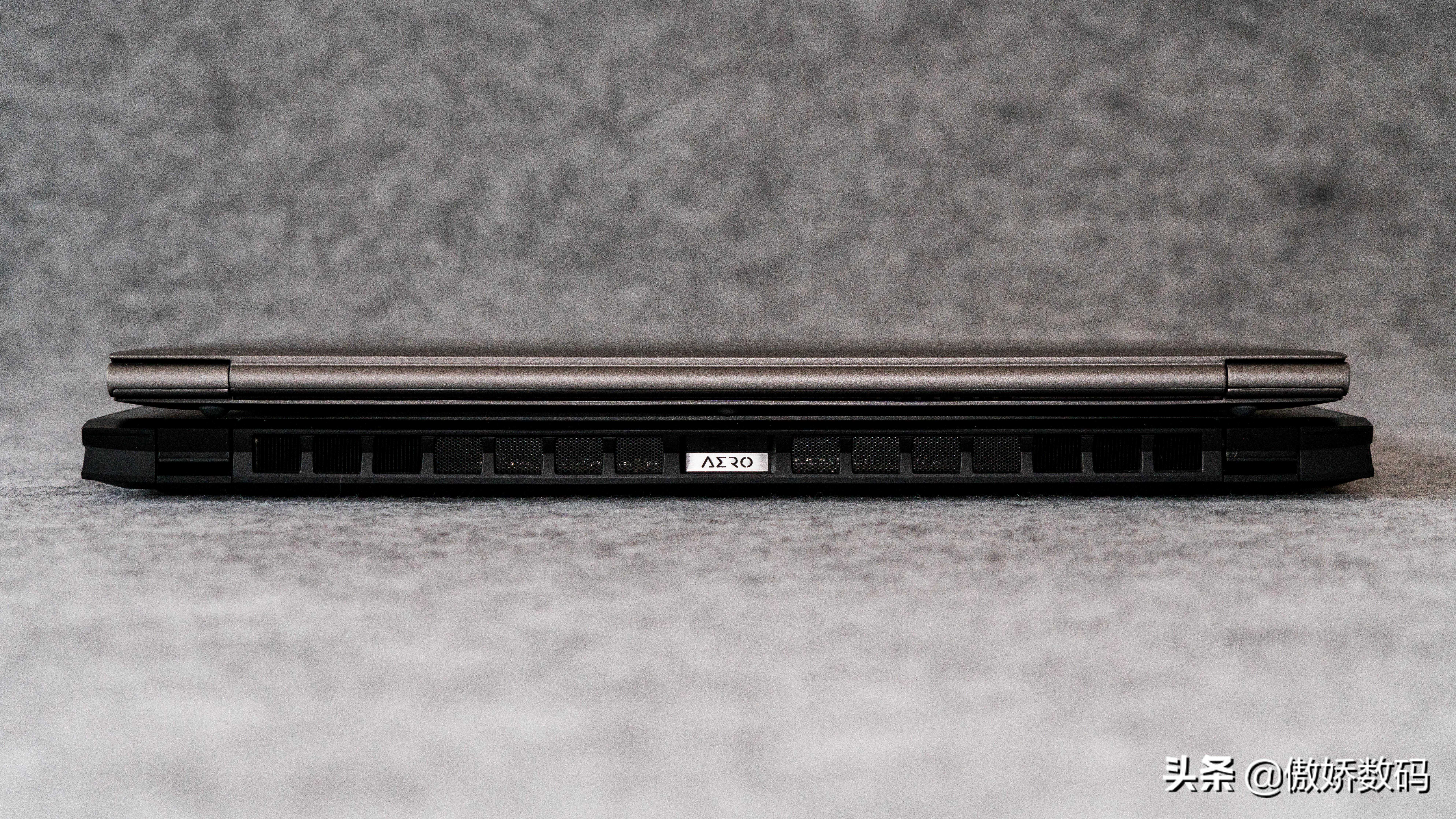 难能可贵的是做到上面这一切的同时,技嘉这台AERO的尺寸控制相当不错,和17寸便携笔记本的标杆gram17比一比,宽度两者基本一致,尾巴稍微超出一点