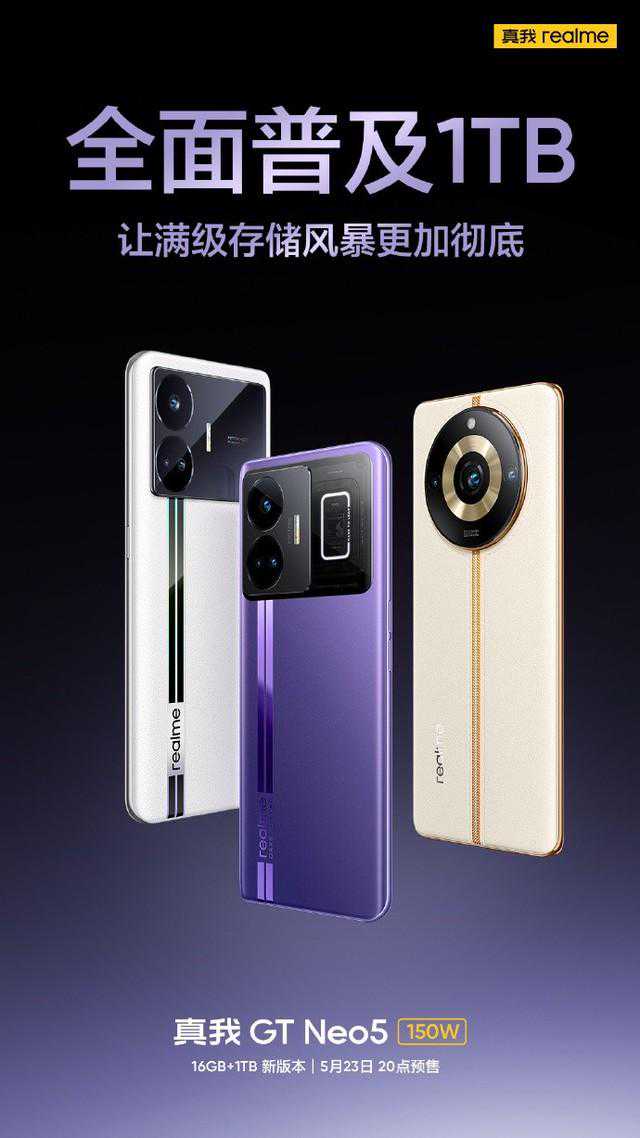 今日,realme副总裁徐起在微博上宣布,realmeGTNeo5150W的16GB+1TB版本将于明日(5月23日)20点开启预售。