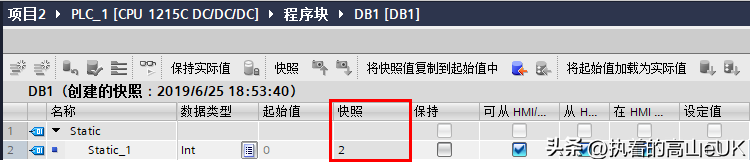 4、值得注意的是上传的DB块包含起始值与快照值,快照值也就是上传时DB块变量的实际值,可以用来将其加载为实际值或初始值。
