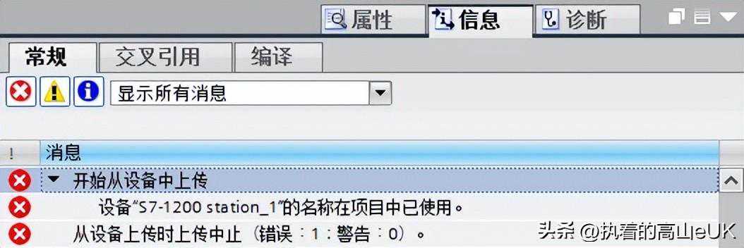 2、执行将设备作错需确认离线项目中没有配置与在线PLC相同名称的站点,否则上传失败。