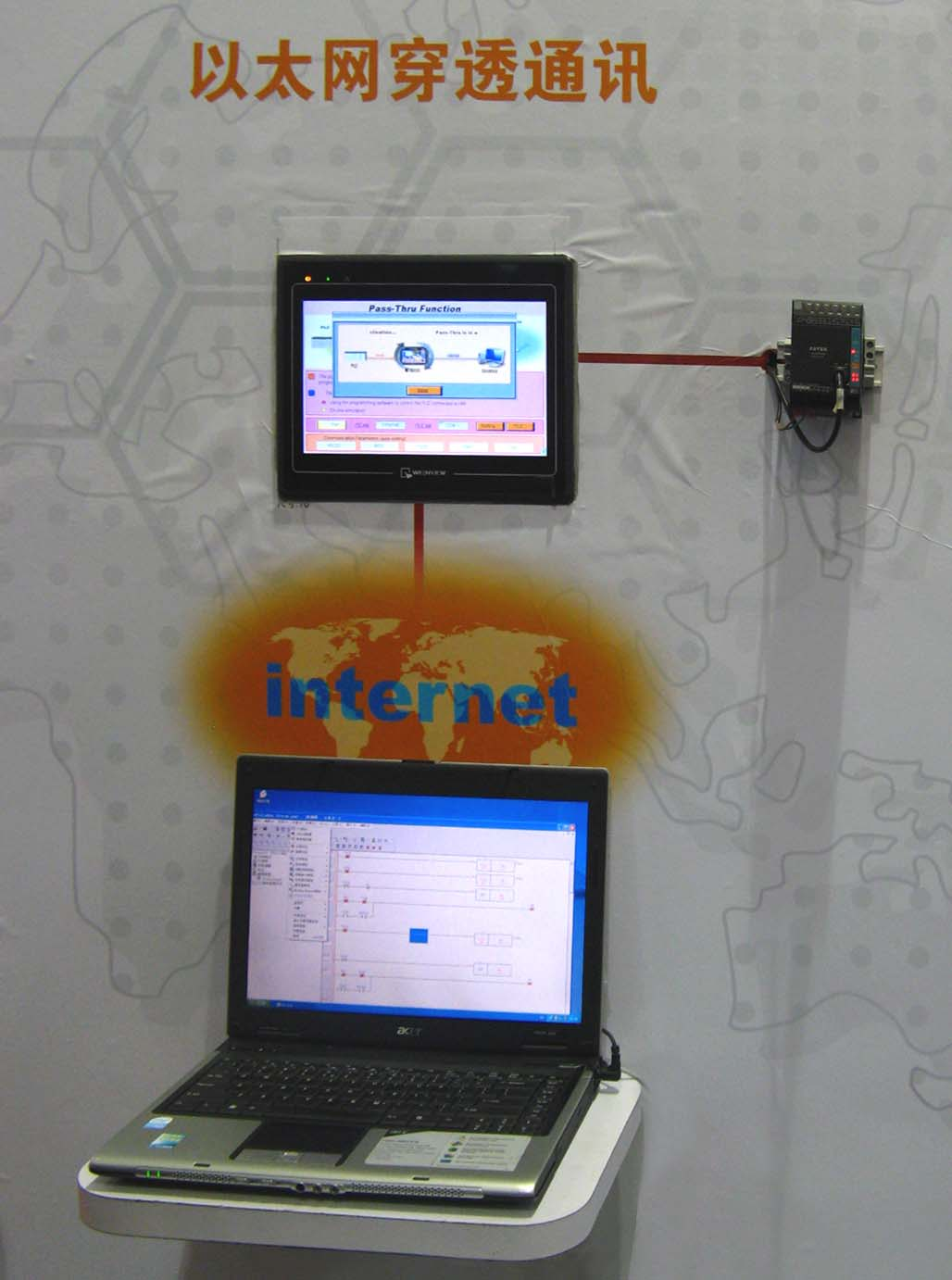 MT8000所提供的以太网穿透通讯功能允许PC上的应用程序透过HMI直接连结PLC,