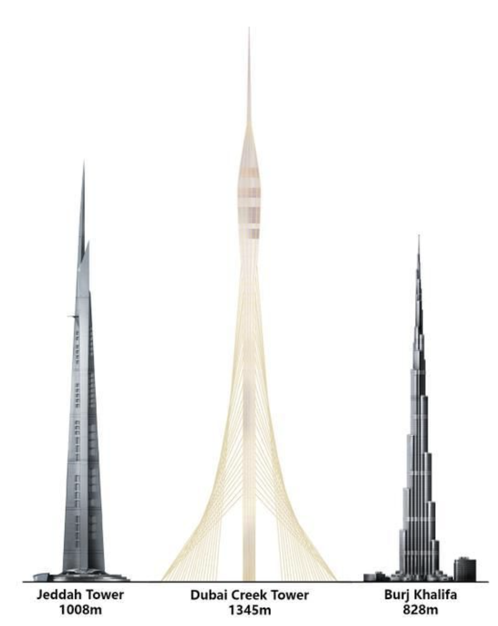 迪拜湾塔若建成,将超过哈利法塔和吉达塔。