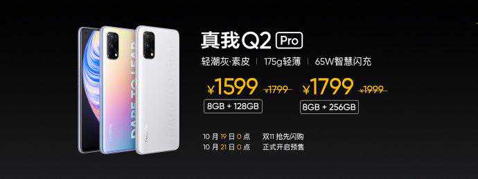 IT之家了解到,售价方面,真我Q2手机4+128GB售价1299元,6+128GB售价1399元,首发到手价立减100元;真我Q2Pro手机8+128GB售价1799元,8+256GB售价1999元,首发到手价立减200元,两部手机将于10月19日开启闪购,10月21日开启预售。