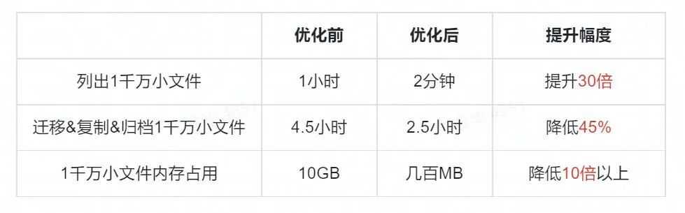 版本深度适配版本,使用XGFS内部接口获取文件列表,大幅提升了在海量小文件(千万~亿级)场景下列出、复制文件的效率,降低了内存占用。根据内部环境实际测试,对比效果如下表所示: