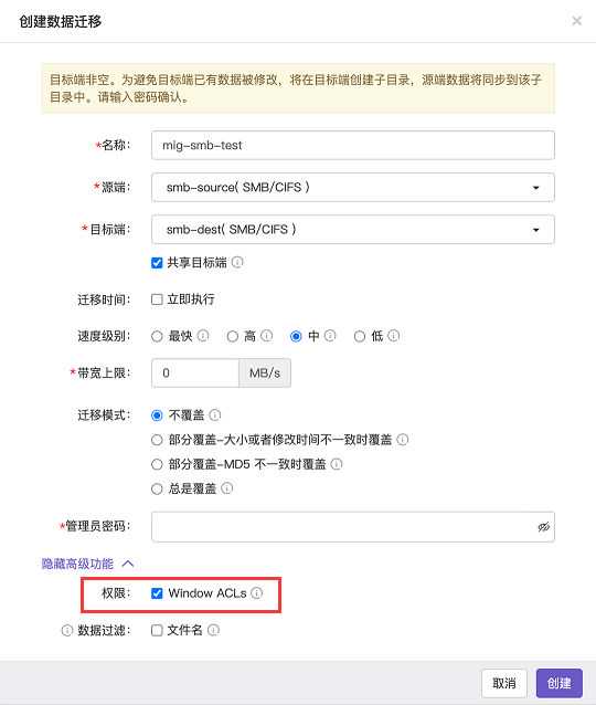 对SMB协议做了进一步支持,支持具有完全控制权限目录的WindowsACLs(Windows下文件的权限控制配置信息)的迁移和复制,为SMB/CIFS场景的数据流动带来更为平滑的方案。