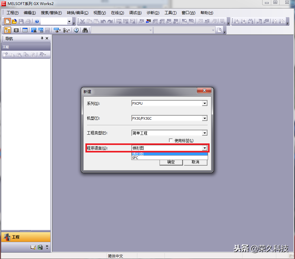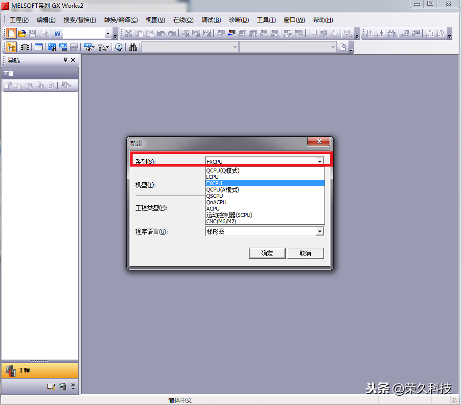 GXWorks2启动后不能马上编写程序,还需建立一个新的工程,在工程中编写程序。