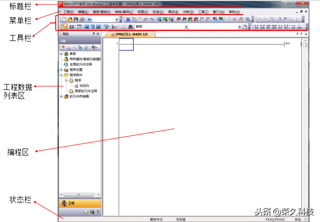 GXWorks2软件窗口有以下内容。