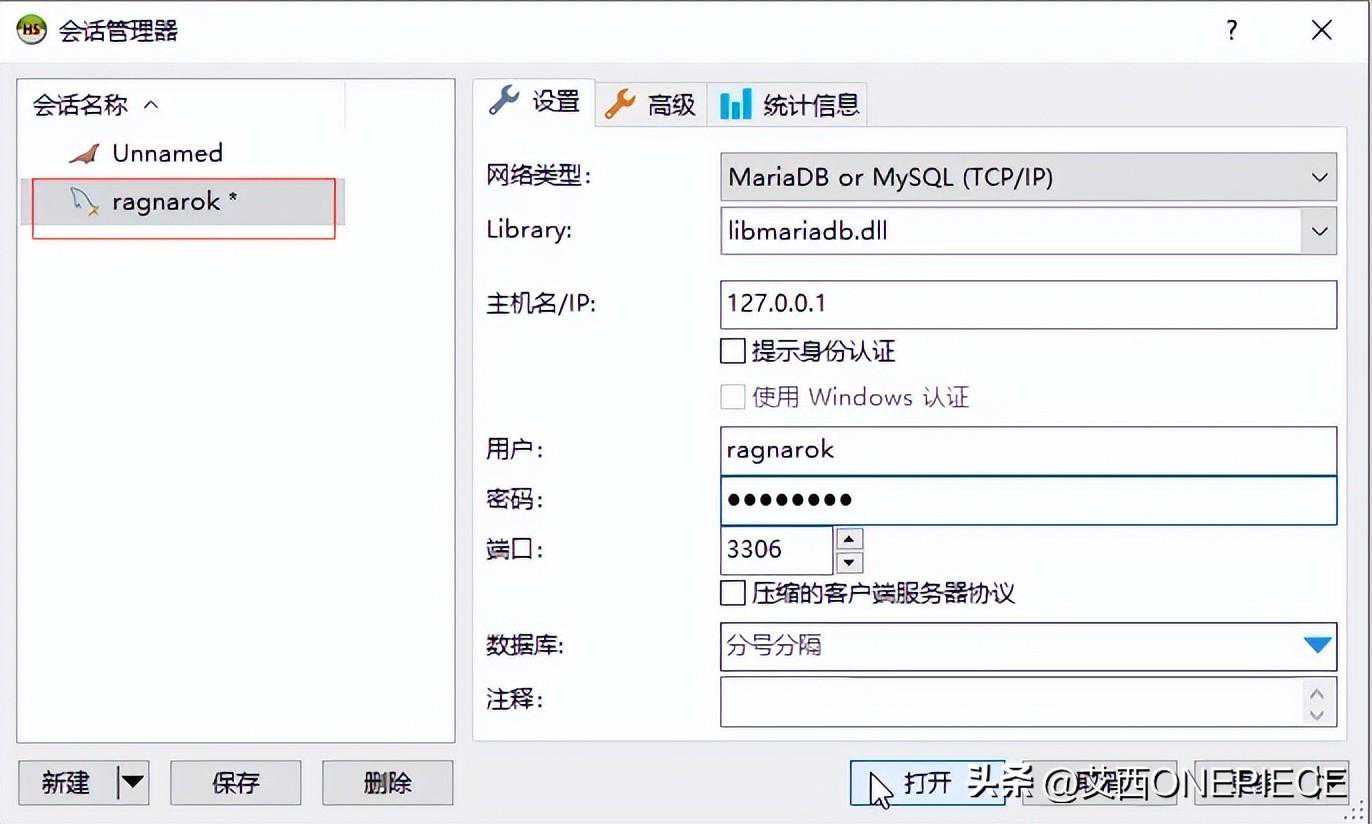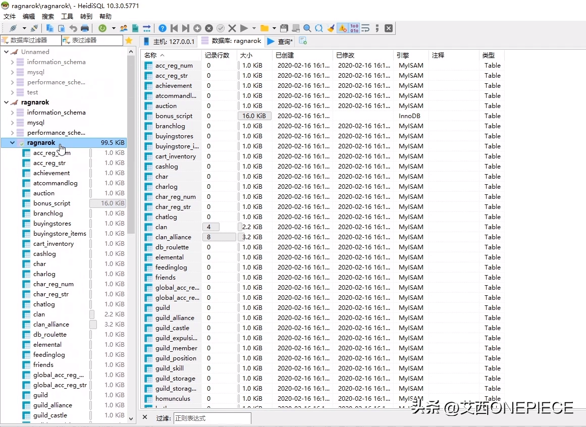 可以看到我们刚刚创建的账户已经连进来了,在这个账户创建一个数据库命名为ragnarok,字符校对utf8mb4_bin即可,如果不是的话自己记得选择utf8mb4_bin