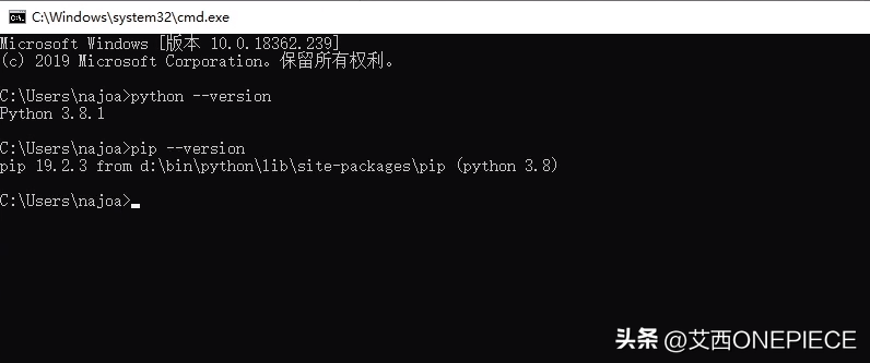 确认Python能正常工作安装完成之后,打开一个新的终端或者cmd窗口,输入以下两个指令进行测试只要能够显示出内容(而不是提示指令不存在),那么就代表安装成功了.