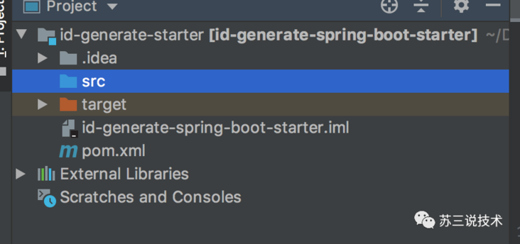 3.2创建id-generate-autoconfigure同样为了方便我把项目重命名了,原本是叫id-generate-spring-boot-autoconfigure,如下图所示: