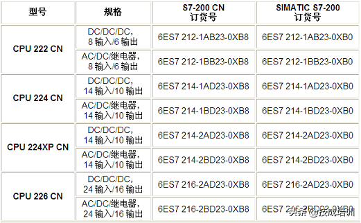 各型号CPU订货号见表1.2。注意:S7-200CN产品里不包含CPU221。
