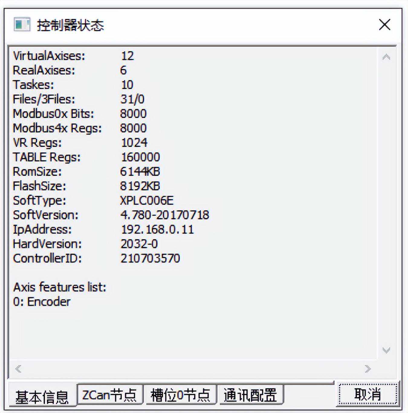 XPLC006E支持多任务,不同的控制器支持的任务数量不同,支持的具体任务数量,可连接控制器之后,在ZDevelop软件菜单栏“控制器状态”查看或在线命令发送?*max指令查看,如下图,表示该控制器用户可自定义的任务有10个,任务编号范围为0-9。
