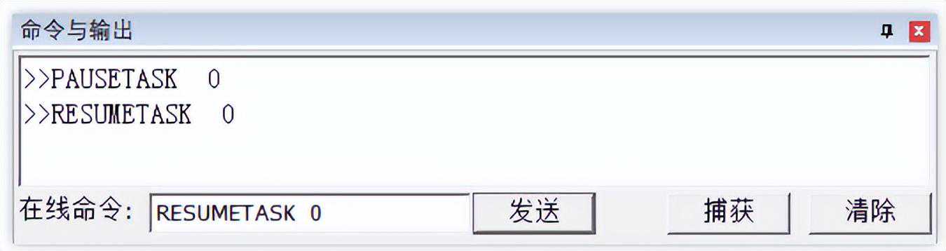 →在线命令发送:RESUMETASK0'任务0恢复运行状态