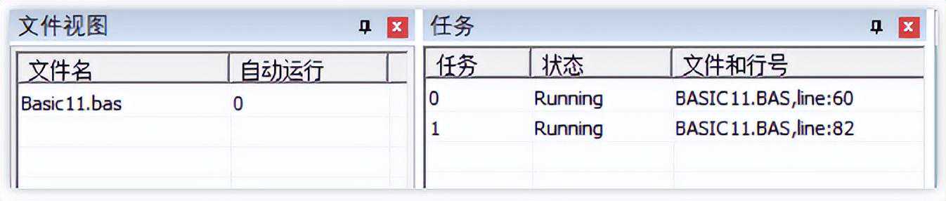 Basic的所有任务只扫描运行一次便停止(除非程序内有WHILE死循环才会一直运行)。一个工程项目下Basic文件支持同时存在多个自动运行任务,自动运行任务是上电后同时开启的,无先后顺序。
