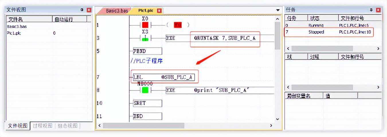 →Basic文件内使用RUNTASK指令开启的PLC子程序任务,如下图: