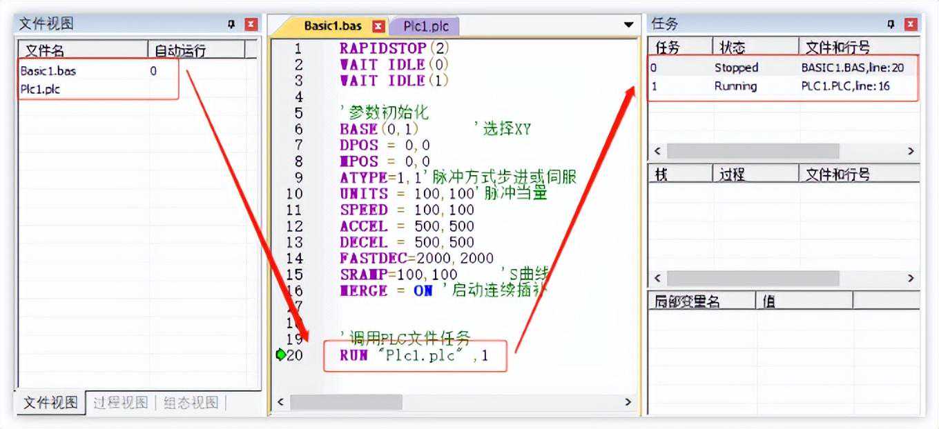 六多Basic和PLC任务相互调用