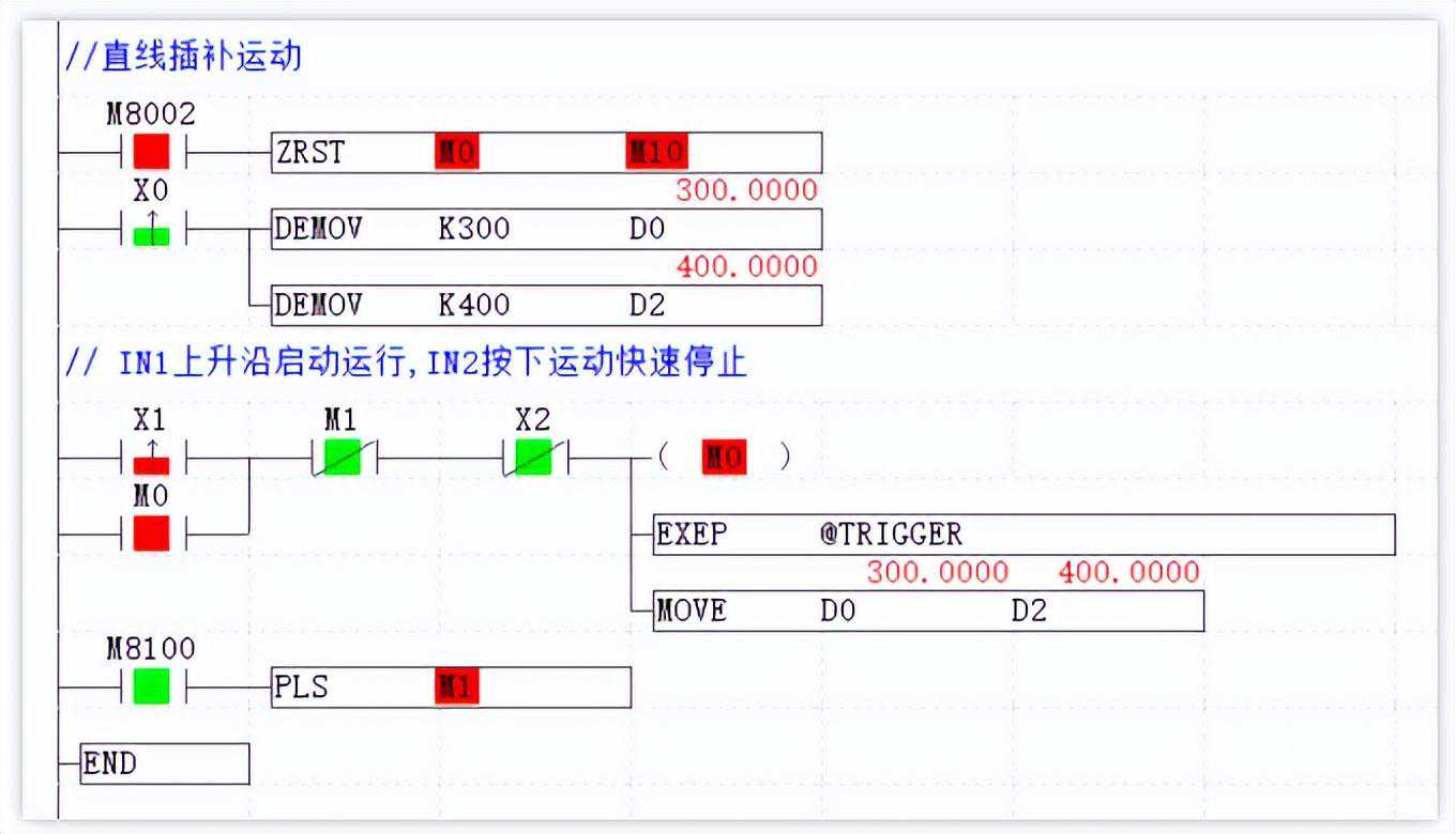 (2)PLC文件梯形图程序,上方Basic程序用PLC梯形图实现如下图。