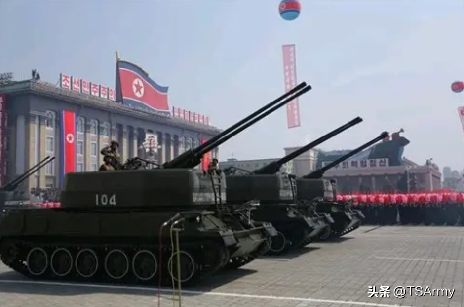 ZSU-23-4实际上是由前苏联当年援助给朝鲜的“石勒喀河”23毫米自行防空炮,但有一部分的底盘被朝鲜重新改进,安装了一个自制炮塔,内置双联30毫米高射炮。
