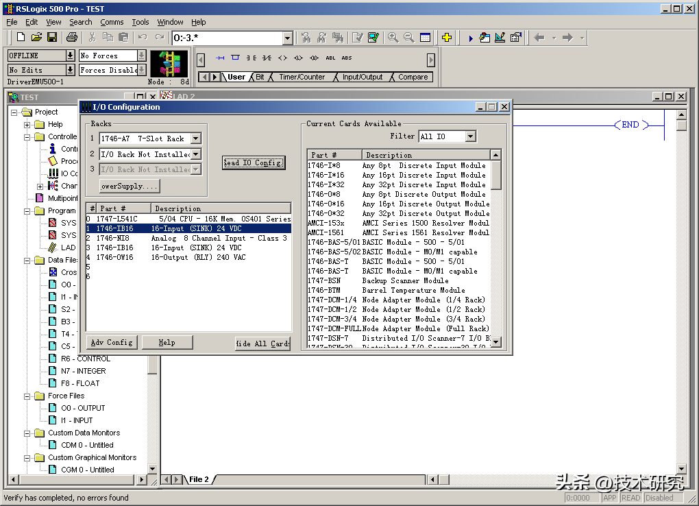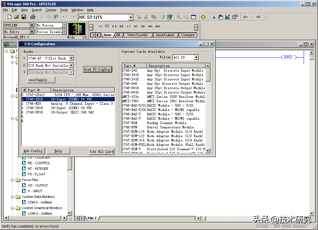 此时,系统自动从连接的SLC500上读取实际的硬件配置情况。这是SLC500型PLC较之其他PLC的一大优势。
