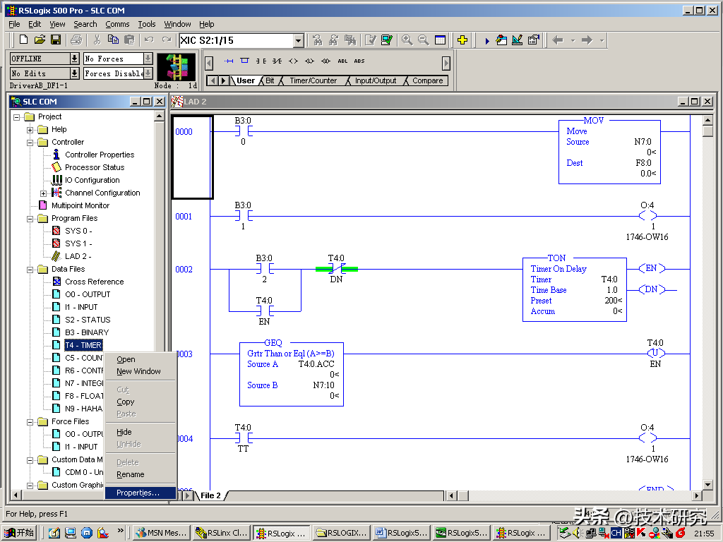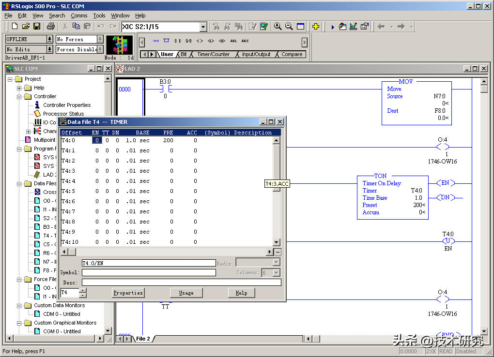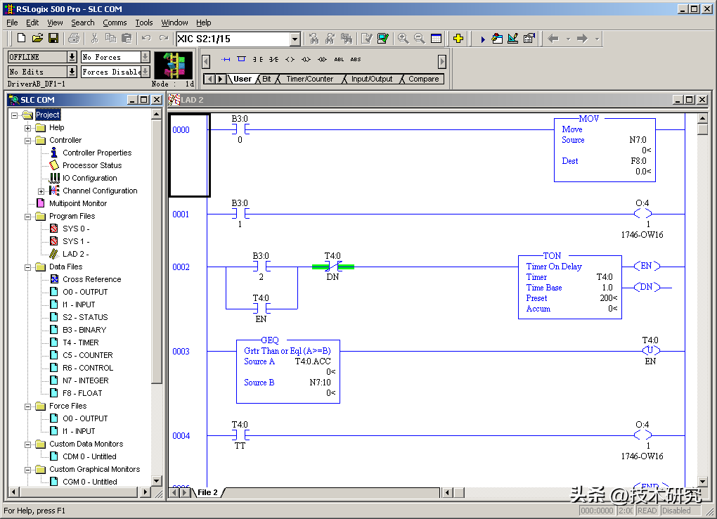 RSLogix500是AB开发的应用于SLC500型中型PLC和Micrologix系列小型PLC的编程软件。具有结构简单,条理清晰,功能强大等优点。