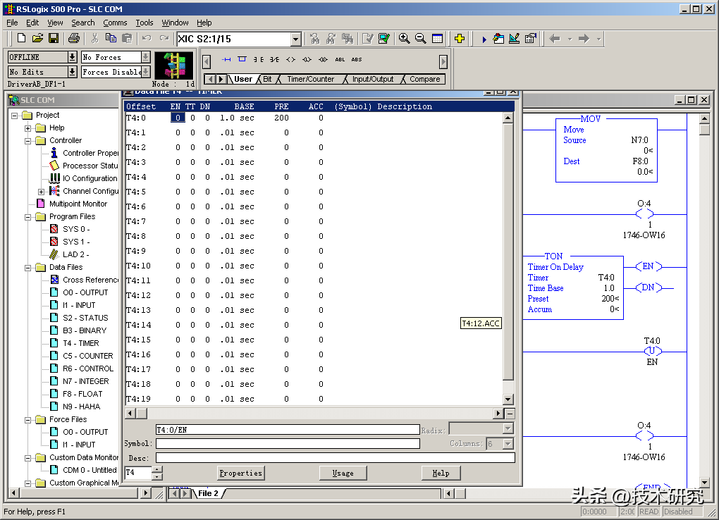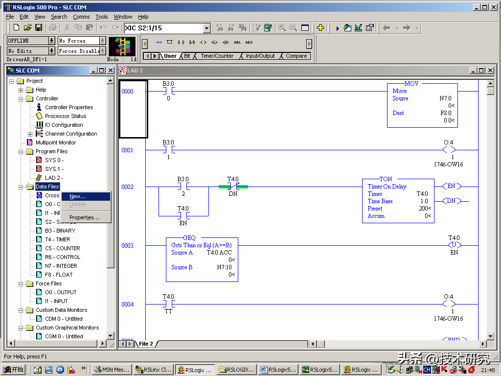 如下图所示,SLC500的变量栏在其编程界面的左下方。在DataFiles下的就是各种SLC支持的变量类型: