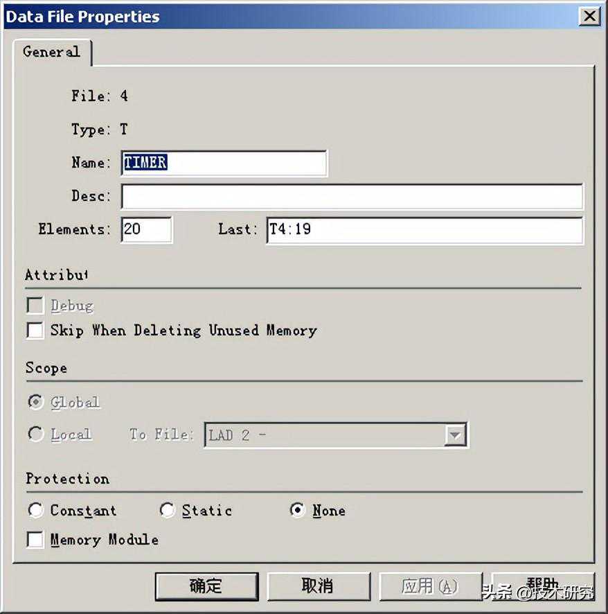 从图中可以看到,O:2.3~O:2.11共计8个变量是属于插在2号槽的8路模拟量输入模块1746-NI8块的,每一个变量针对AI模块的1个通道。从1746-NI8的用户手册中可以知道,~是给每个通道进行配置所用的。而最后的O:4.0是由于I/O模块中增加的1746-OW1616路开关量模块而增加的。它的每一个位,即O:4.0/0~O:4.0/15,都对应着一路继电器输出回路。