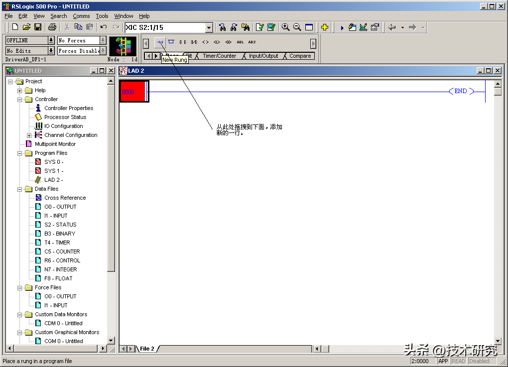 在RSLogix500软件里进行梯形图的编程方法如下: