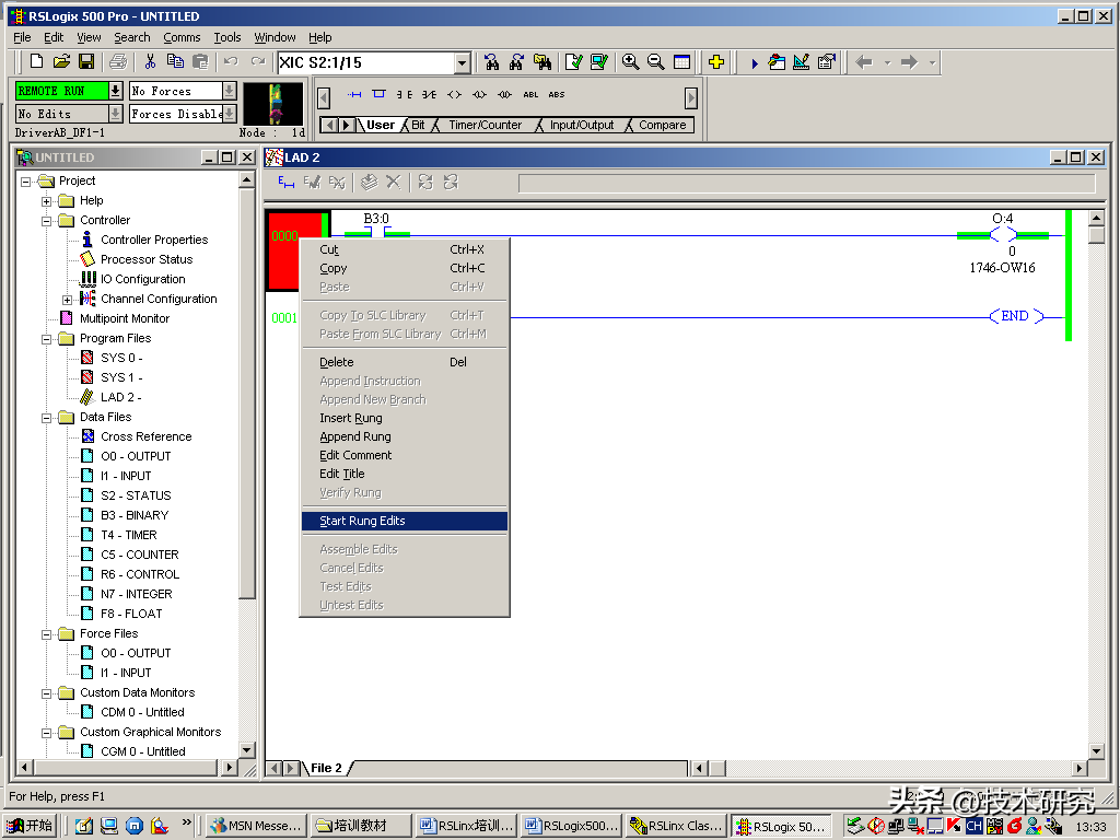 右击要修改的程序,选择StartRungEdits,窗口变成如下图所示: