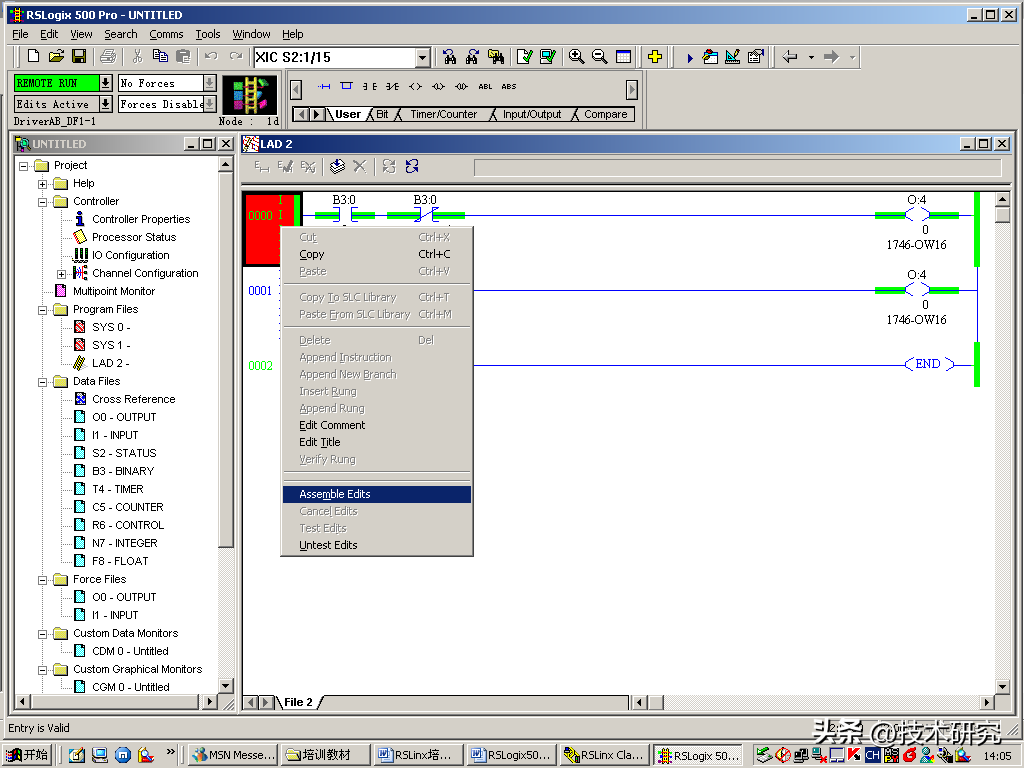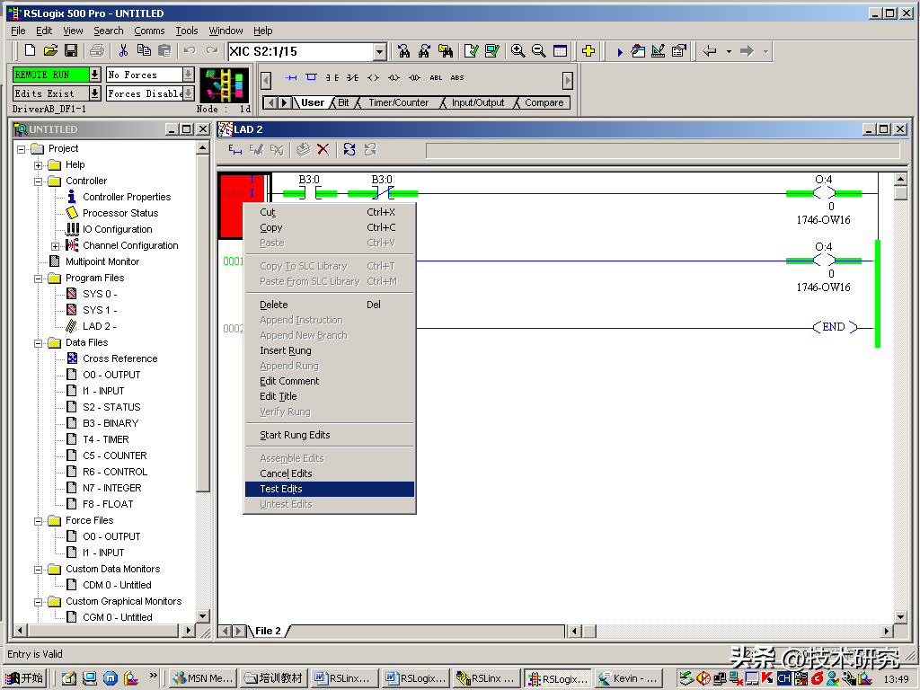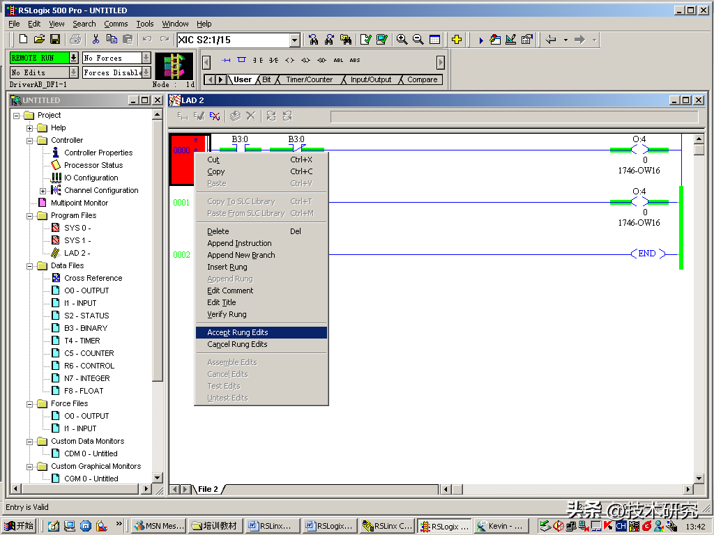 右击修改好的程序,选择AcceptRungEdits。画面发生如下变化: