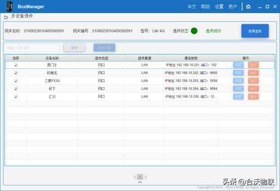 1.勾选需要透传的设备(添加设备默认完成勾选)