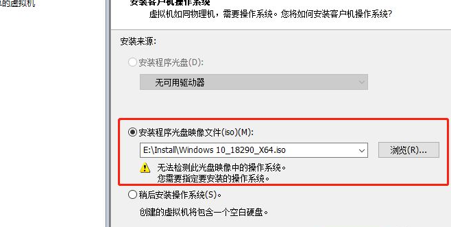 3,选择安装程序CD图像文件(ISO),然后单击“浏览”,选择Win10的ISO安装文件,如果提示“操作系统在此CD图像中”,则可以忽略此提示,只要您的安装文件正常单击“下一步”。