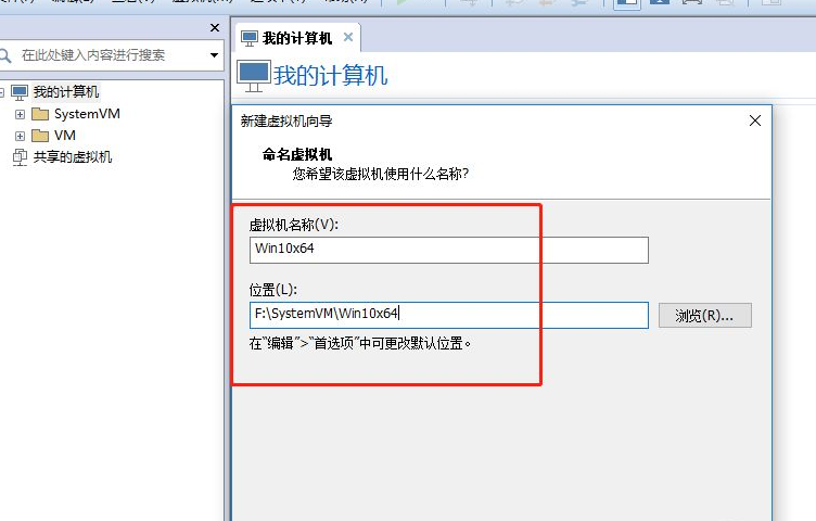 5,输入虚拟机名称,选择虚拟机文件存储位置,然后单击“下一步”。