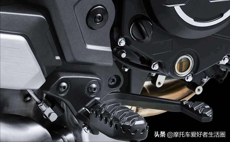 它搭载的649CC直列双缸四冲程水冷发动机,双顶置凸轮轴,压缩比为11.3:1